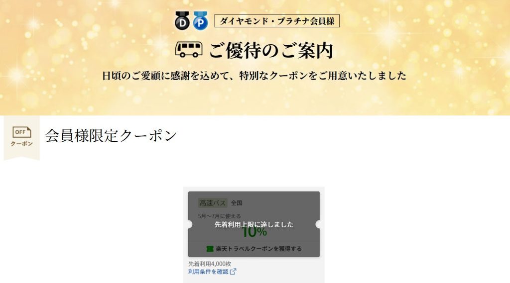 実際に筆者も、最初はクーポンの上限に達していて諦めかけたのですが、何度かサイトを訪れているうちに枠が復活し、10%オフで予約することができました!