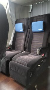 • 座席:4列シートですが広々ヘッドレスト付きで首も楽。